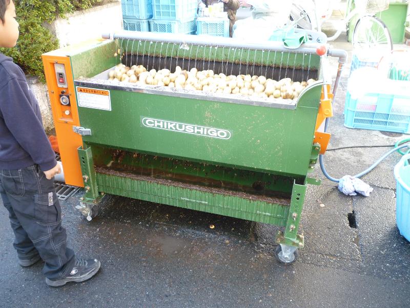 里芋の洗って皮をむく機械もあり…。色合いと雰囲気が、自動一面鉋盤?