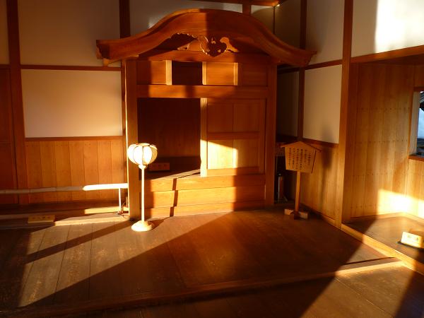 御湯殿。どういう風に入るのか、わからないけど、中央に向かって床が傾斜してます。