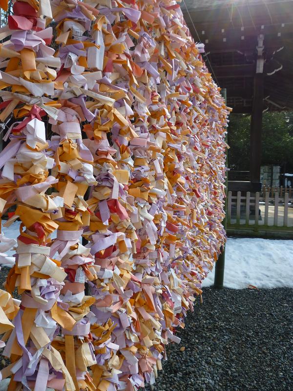 ここのおみくじは、カラフル。。。結んである様子がポップ。