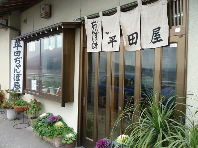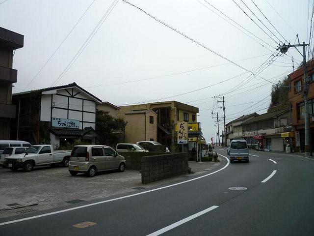 じゃんぼ餅屋が密集して存在する。仙厳園のそばの海沿いの道。