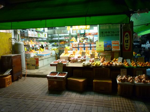 朝もはよからやっとります。お花に果物、野菜、お魚、お肉、さつま揚げ。鹿児島の台所だすな。