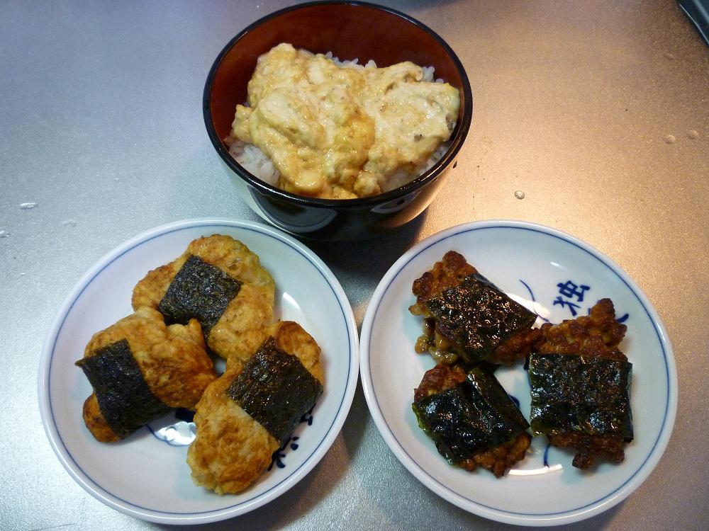 右下は、油が余ったからついでに納豆も揚げた。