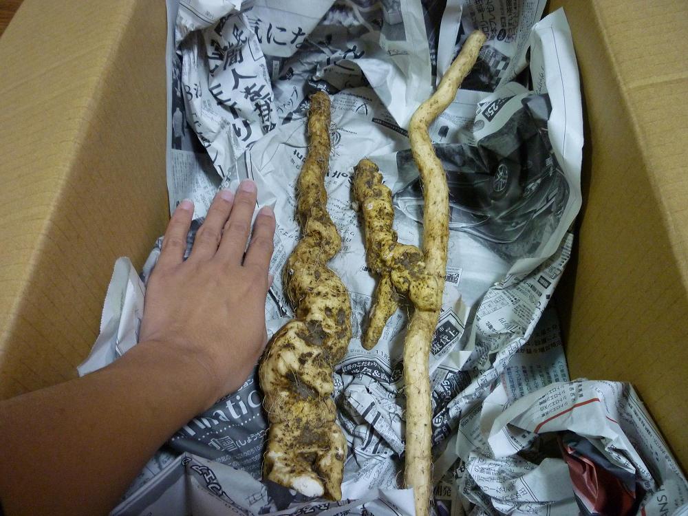 ところが、このたび、身近に掘り師(?)デビューした方がおられまして。自然薯送ってくれました!