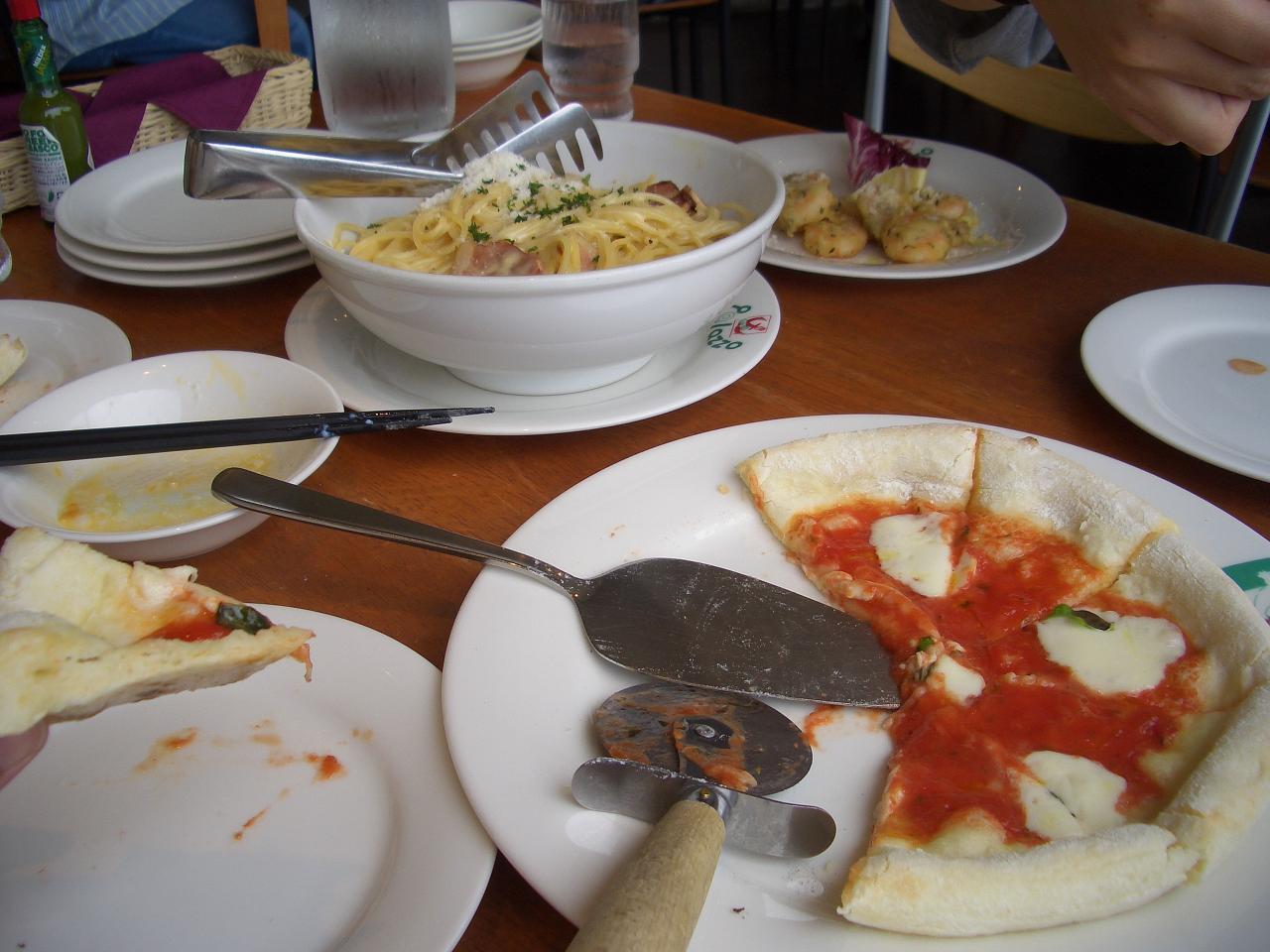 パスタは、1皿を2~3人で取り分けていただける量です。