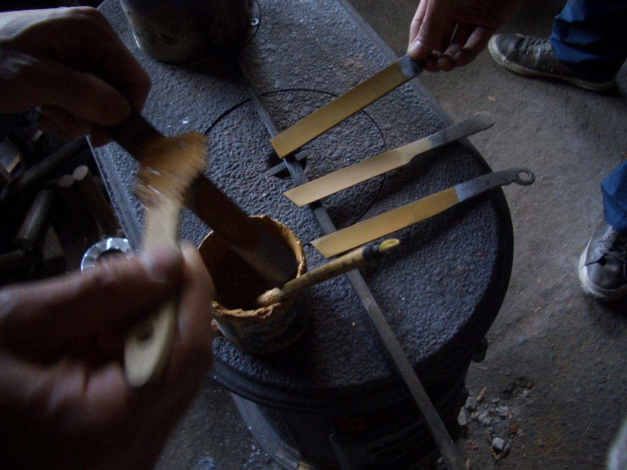 去年の冬、兵庫県三木市の鍛冶屋さんで、しらがきを作らせてもらった時の写真。